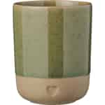 - En härlig taktil upplevelse: Kontrasten mellan den släta, olivgröna glasyren och den råa, matta lerbasen erbjuder en unik sensorisk upplevelse som gör varje klunk till ett ögonblick av närvaro.