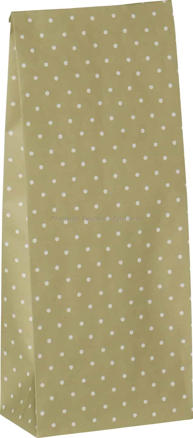 Presentera dina gåvor med den enkla, hjärtliga stilen från den danska landsbygden. Denna charmiga papperspåse från Ib Laursen, med sitt fina prästkragemönster på en mjukt olivgrön botten, förvandlar varje liten gest till något alldeles extra.