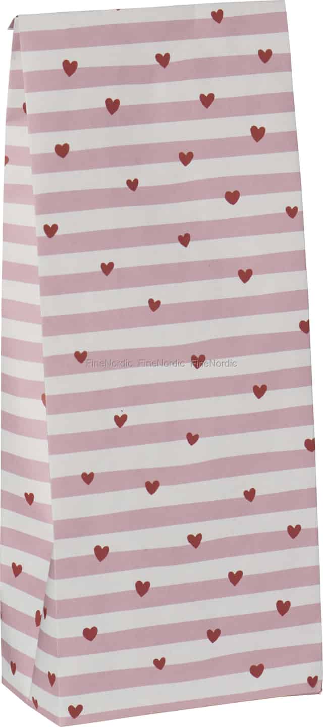 Ib Laursen Papperspåse - Röda hjärtan, ljusrosa ränder - Medium