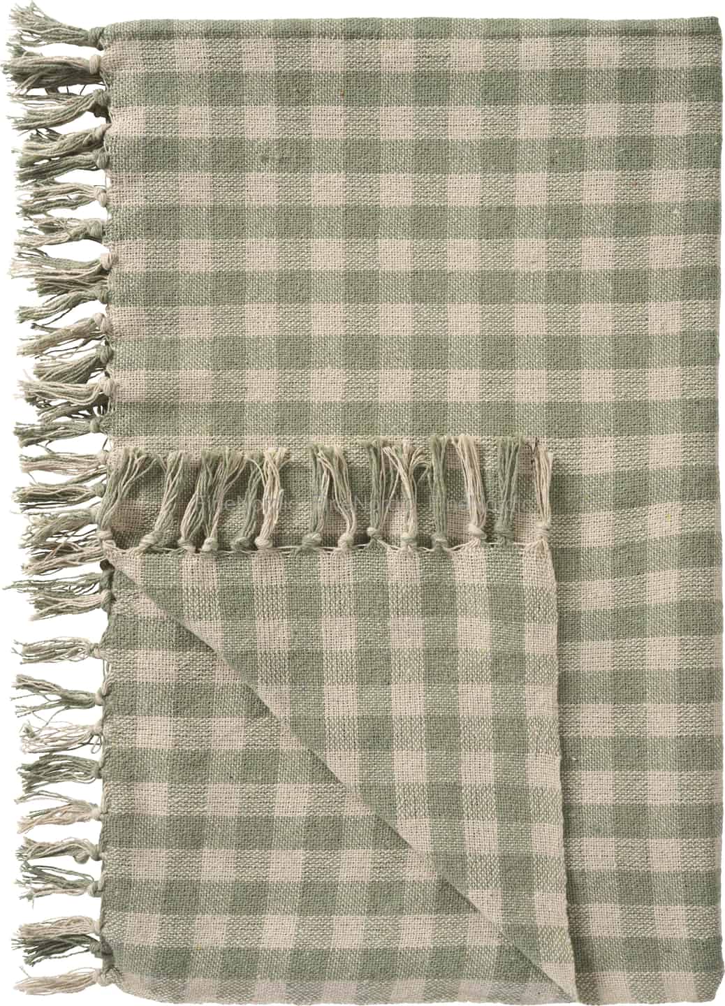 Föreställ dig en stilla eftermiddag, en kopp te i handen och den mjuka tyngden av denna vackra pläd över dina knän. Vävd av mjuk bomull i ett tidlöst mönster med dammigt gröna och naturfärgade rutor, för den med sig en känsla av lantligt lugn in i ditt hem.