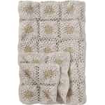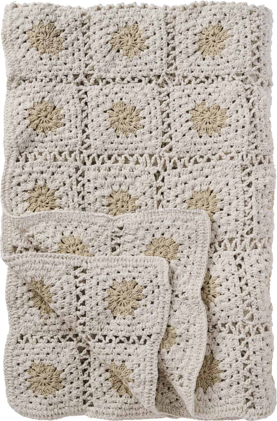Ib Laursen Pläd - Virkad - Kräm - Naturfärgade blommor 130 x 170 cm