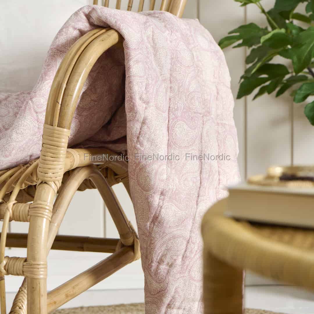 Ib Laursen Quilt Aya Rosa Malva med vitt paisleymönster 130 x 170 cm, köp här hos FineNordic.