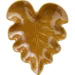 Denna vackra keramikskål från Ib Laursen är en stillsam hyllning till naturens enkla former. Dess generösa lövform har en varm, senapsbrun glasyr som glöder med en inbjudande lyster, som påminner om den gyllene timmens ljus som silar genom en höstskog. De fint präglade ådrorna tillför ett lager av textur, vilket gör den till ett föremål som känns lika ljuvligt som det ser ut. Det är ett underbart sätt att föra in en bit av naturen i ditt hem och skapa en känsla av lugn och samhörighet.