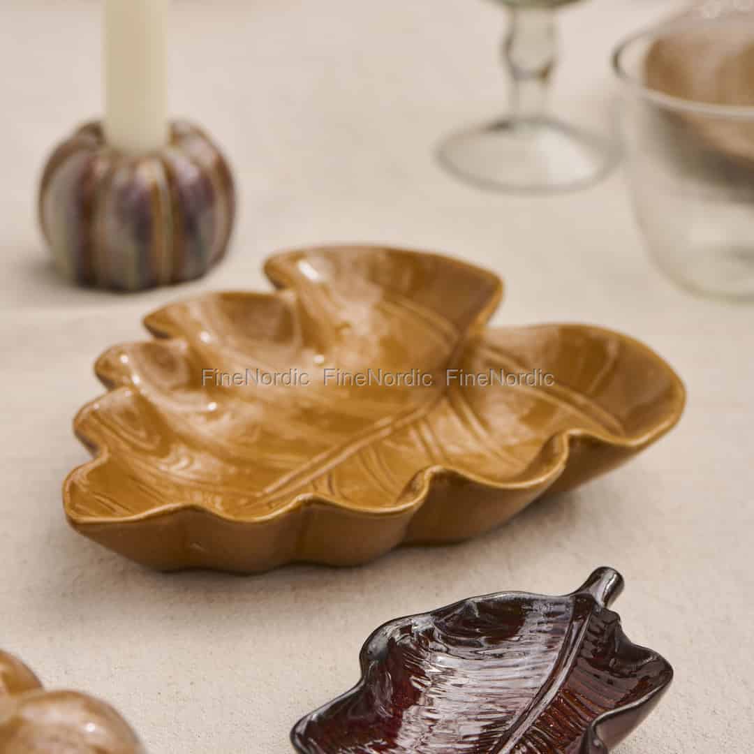 Bjud in den stillsamma charmen från en skogspromenad i ditt hem. Denna vackra, lövformade skål från Ib Laursen fångar höstens själ med sin organiska form och varma, inbjudande glasyr, redo att omfamna dina favoritgodsaker för säsongen.