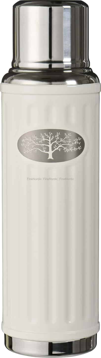 Denna vackert designade termos från Ib Laursen är mer än bara en behållare; den är en inbjudan att njuta av de stilla stunderna. Den milda smörkrämsfärgen och den taktila, räfflade ytan känns behaglig i händerna, medan de polerade metalldetaljerna ger en touch av klassisk finess. I centrum sitter en elegant stiliserad träd-symbol på en borstad metallplakett, en stilla påminnelse om naturens enkla skönhet som gör varje blick till ett nöje.