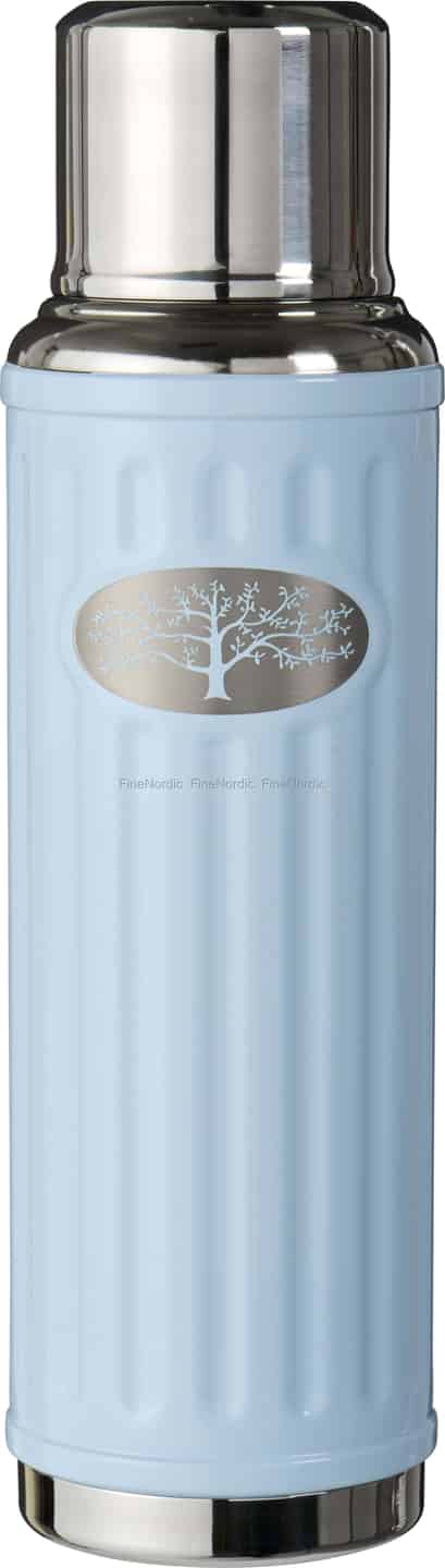 Omfamna den danska konsten att finna glädje i vardagen med denna förtjusande termos från Ib Laursen. Dess lugnande, ljusblå nyans och retroinspirerade räfflade yta känns underbar i händerna och lovar en tröstande värme inuti. Designen är omsorgsfullt avslutad med en polerad metallkork och bas, samt ett charmigt ovalt emblem som avbildar ett träd – en stilla påminnelse om fridfulla stunder i naturen. Det är mer än bara en flaska; det är ett litet stycke skandinavisk design som gör varje utflykt speciell.