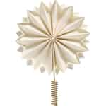 - En intrikat, skulptural design: Stjärnan är tillverkad av vackert benvitt papper, och dess komplexa vikningar skapar ett fantastiskt spel av ljus och skugga som ger djup och textur till din gran.
