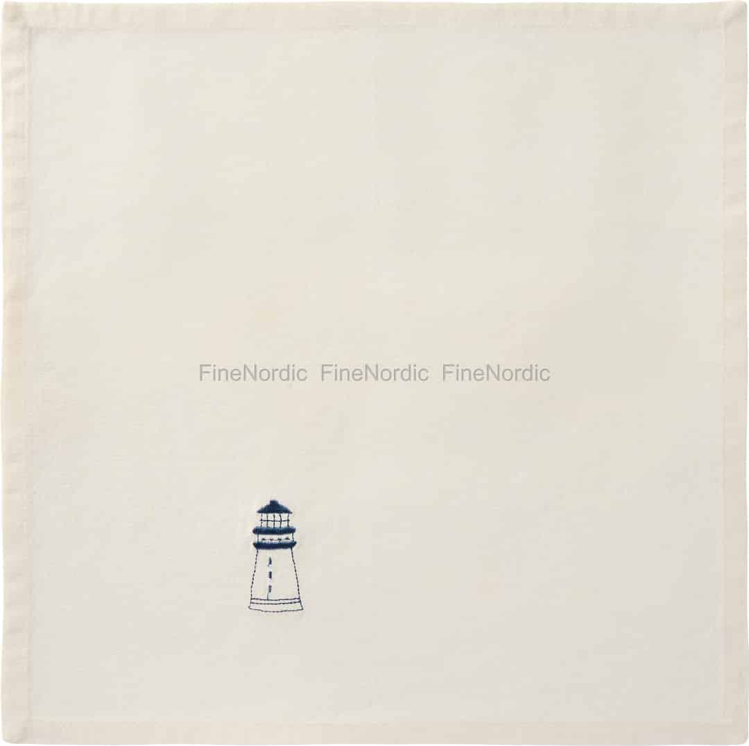Servettens sanna hjärta är den ensamma, vackert broderade fyren. Sydd i en djup, rogivande blå färg står den som en tyst hyllning till de ikoniska landmärken som vaktar de nordiska kusterna. Denna lilla, genomtänkta detalj förvandlar varje måltid till en miniatyrresa till kusten och ger din dukning ett djup av berättelse och karaktär. Det är en inbjudan att sakta ner och njuta av de enkla, vackra stunderna.