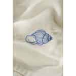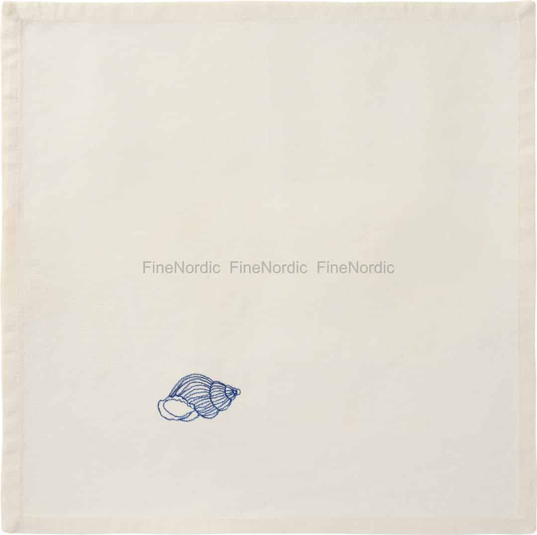Inspirerad av den danska kustens stilla skönhet är Atlantis-servetten ett bevis på enkel elegans. Dess design väcker minnen av långa promenader längs stranden, där man samlar skatter som tidvattnet lämnat kvar. Den ensamma, vackert broderade snäckan är en subtil hyllning till havet, placerad mot den lugna och inbjudande bakgrunden av smörkrämsfärgad bomull. Det är en detalj som inte ropar på uppmärksamhet, utan snarare viskar en berättelse om ett fridfullt liv vid vattnet.
