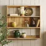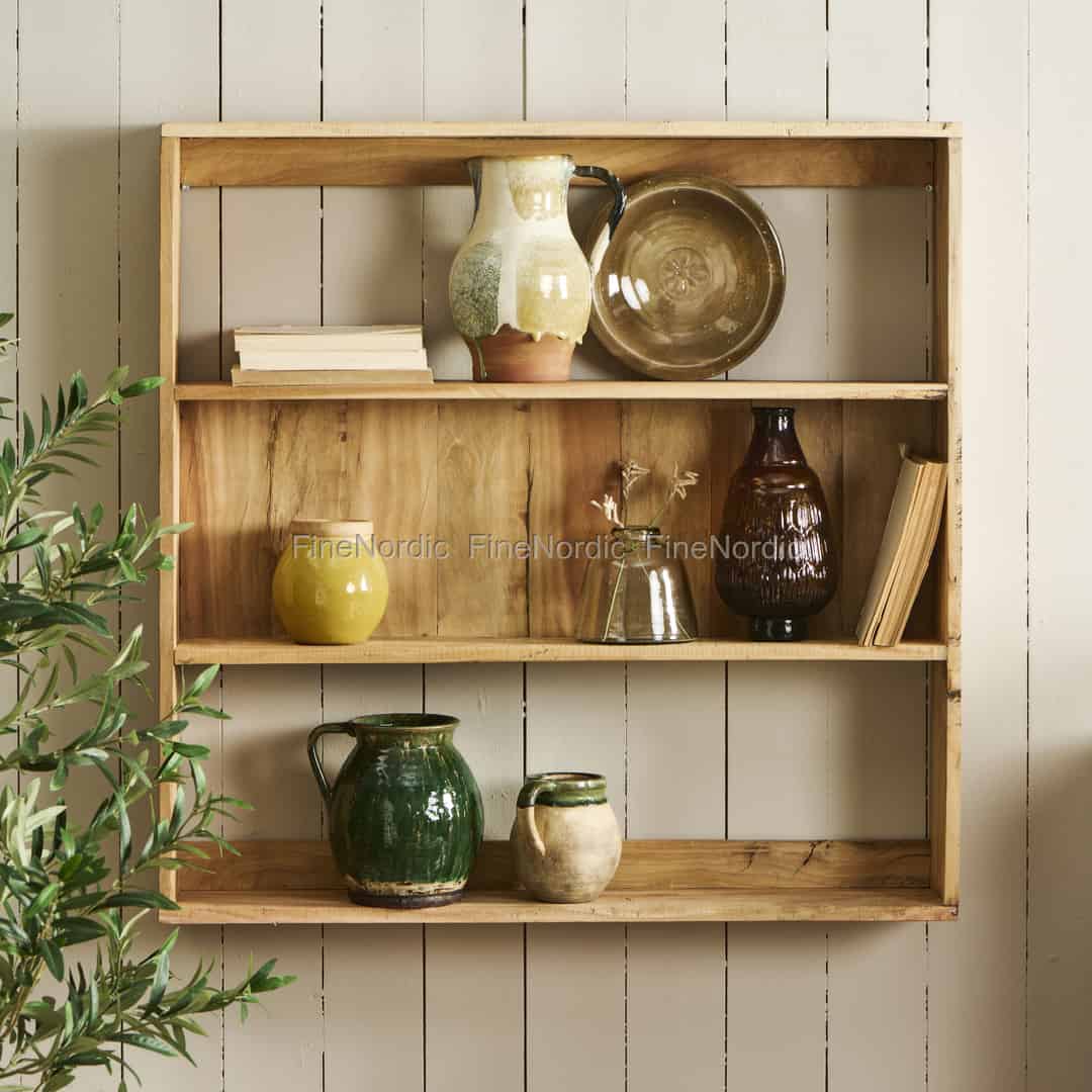 Med sina generösa proportioner och tre distinkta nivåer bjuder denna hylla in till kreativitet. Den mellersta sektionen, med sin charmiga plankbakpanel, är idealisk för att framhäva ömtåliga föremål, medan de öppna övre och nedre hyllplanen skapar en känsla av ljus. Föreställ dig den i ditt vardagsrum med levande ljus och minnen, eller i köket som ett hem för dina favoritmuggar. Det är ett innerligt tillskott som förkroppsligar essensen av hygge – att finna glädje i livets autentiska detaljer.