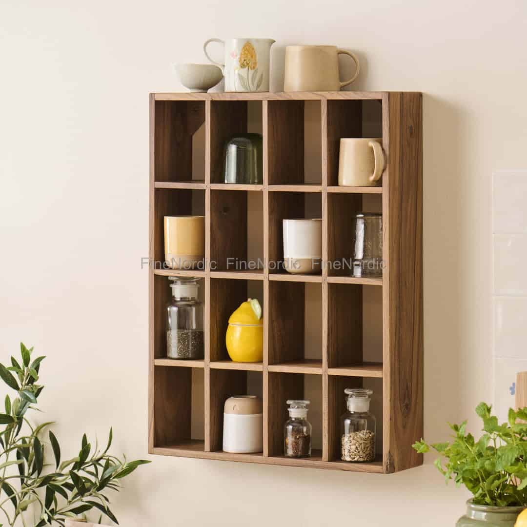 - Ett hem för varje skatt: Med sexton individuella fack kan du konstfullt arrangera dina favoritmuggar, små växter eller samlade kuriositeter och skapa en utställning som är helt unik för dig.
