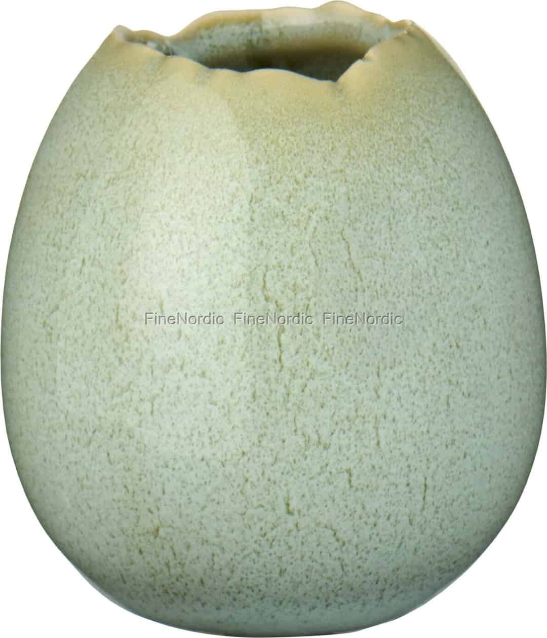 I den nordiska designvärlden finns en djup uppskattning för livets små, stilla ögonblick. Denna vackra lilla vas från Ib Laursen är ett perfekt förkroppsligande av den filosofin. Dess charmiga äggform, tillverkad i keramik, vilar bekvämt i din hand, och dess texturerade gröna glasyr påminner om ett delikat fågelägg som hittats inbäddat i gräset. Den kräver ingen storslagen bukett; istället ber den om en enda, älskad stjälk – en ensam trädgårdsros, en kvist lavendel eller en glad prästkrage plockad av ett barn.