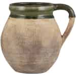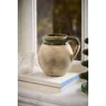 Den djupa, olivgröna glasyren som kröner kanten och handtaget tillför en touch av raffinerad färg och en glansig, krackelerad yta som fångar ljuset. Denna genomtänkta detalj utgör en vacker motvikt till vasens matta textur. Oavsett om du fyller den med några torkade strån eller låter den stå för sig själv som ett konstverk, tillför Avignon-vasen ett lager av värme och historisk charm till ditt hem.