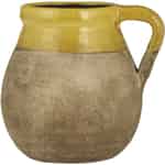 Denna mångsidiga lilla kanna har en perfekt storlek för en hylla, fönsterbräda eller köksbänk. Föreställ dig den fylld med en handfull torkad lavendel, som hållare för dina favoritslevar i trä, eller helt enkelt som en solkysst provensalsk värmekälla i ett stillsamt hörn av ditt hem. Det är mer än bara en vas; det är ett litet stycke rustik poesi att vårda ömt.