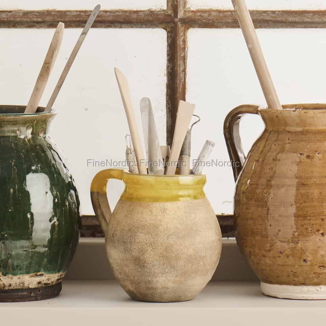 Ib Laursen Vas - med handtag - Naturfärgad - med "senapsgul" kant - "Avignon"