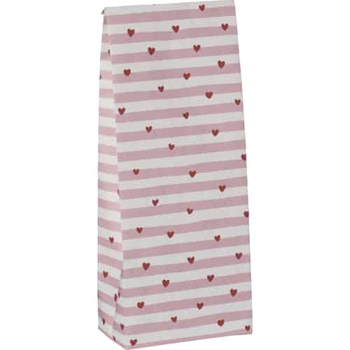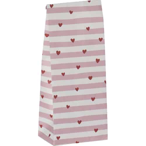 Ib Laursen Papperspåse - Röda hjärtan, ljusrosa ränder - Liten