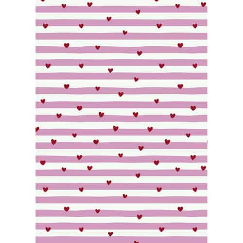 Ib Laursen Presentpapper - Röda hjärtan, ljusrosa ränder 5 m