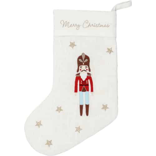 GreenGate Julstrumpa "Nutcracker White" med Broderi