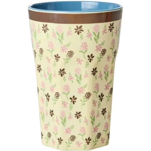 Rice Melamin Kopp - "Hacienda Flower" - Cream - Lång