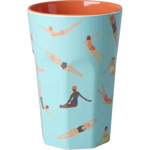 Rice Melamin Kopp - "Checkered Stencil" - Rosa - Lång