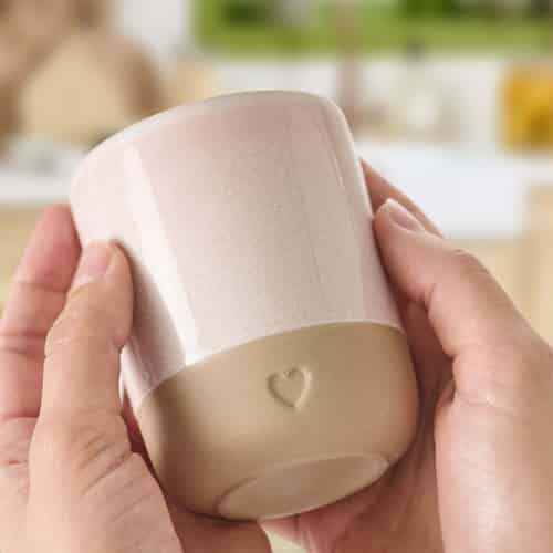 Ib Laursen Mugg utan handtag - Hjärta - Matt brun lera med ljusrosa kant