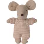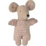 Varje stor berättelse har en liten början, och med denna söta babymus vecklar en hel värld av fantasi ut sig. Klädd i en underbart mjuk, rosa- och beigestickad dräkt är denna lilla vän redo att bli ompysslad. Från de fint sydda ögonen till de överdimensionerade öronen är varje detalj skapad med den kärlek och omsorg som gör Mailegs leksaker så speciella. Det är en karaktär som väntar på ett namn, en roll och en plats i ditt barns hjärta.