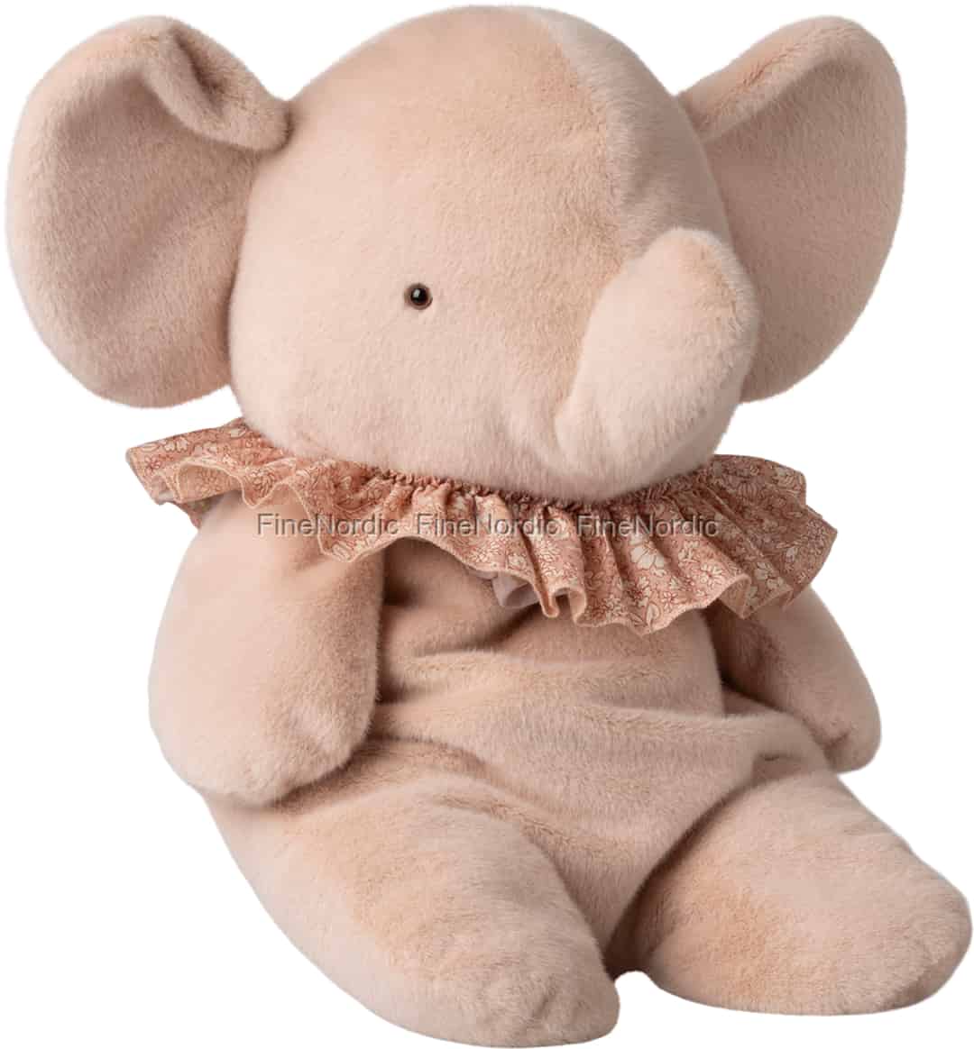 Möt din nya bästa vän, en mild jätte från Mailegs förtrollande värld. Med underbart stora, slokande öron och de snällaste av ögon är denna puderfärgade elefant en bild av rofylld charm. Den otroligt mjuka plyschen inbjuder till oändliga kramar, medan dess tyngda kropp gör att den kan sitta tålmodigt och vänta på att få höra sagor och dela hemligheter. Den vackra, blommiga kragen i vintagestil runt halsen är ett bevis på de genomtänkta detaljerna som gör Mailegs leksaker så speciella.