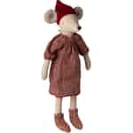 Föreställ dig den stilla magin en julmorgon, med en ny vän som väntar vid den öppna spisen. Denna charmerande maxiflicka från Maileg är redo att dela alla dina julberättelser, klädd i sin allra finaste helgdräkt.