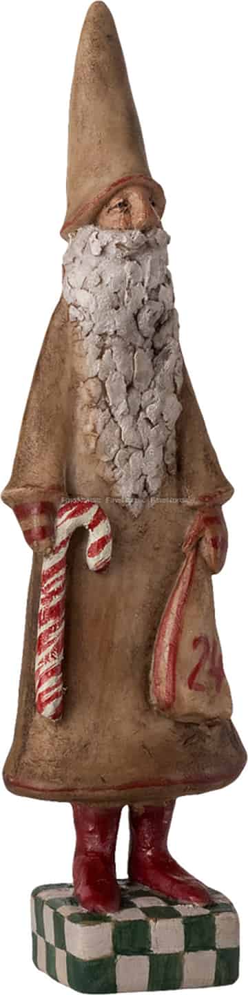 - Charmiga detaljer som berättar en historia: Från hans texturerade skägg till den lilla säcken märkt '24', bjuder varje detalj in till en närmare titt. Med sina 25 cm i höjd blir han ett förtjusande blickfång på en spiselkrans eller en festlig hylla.