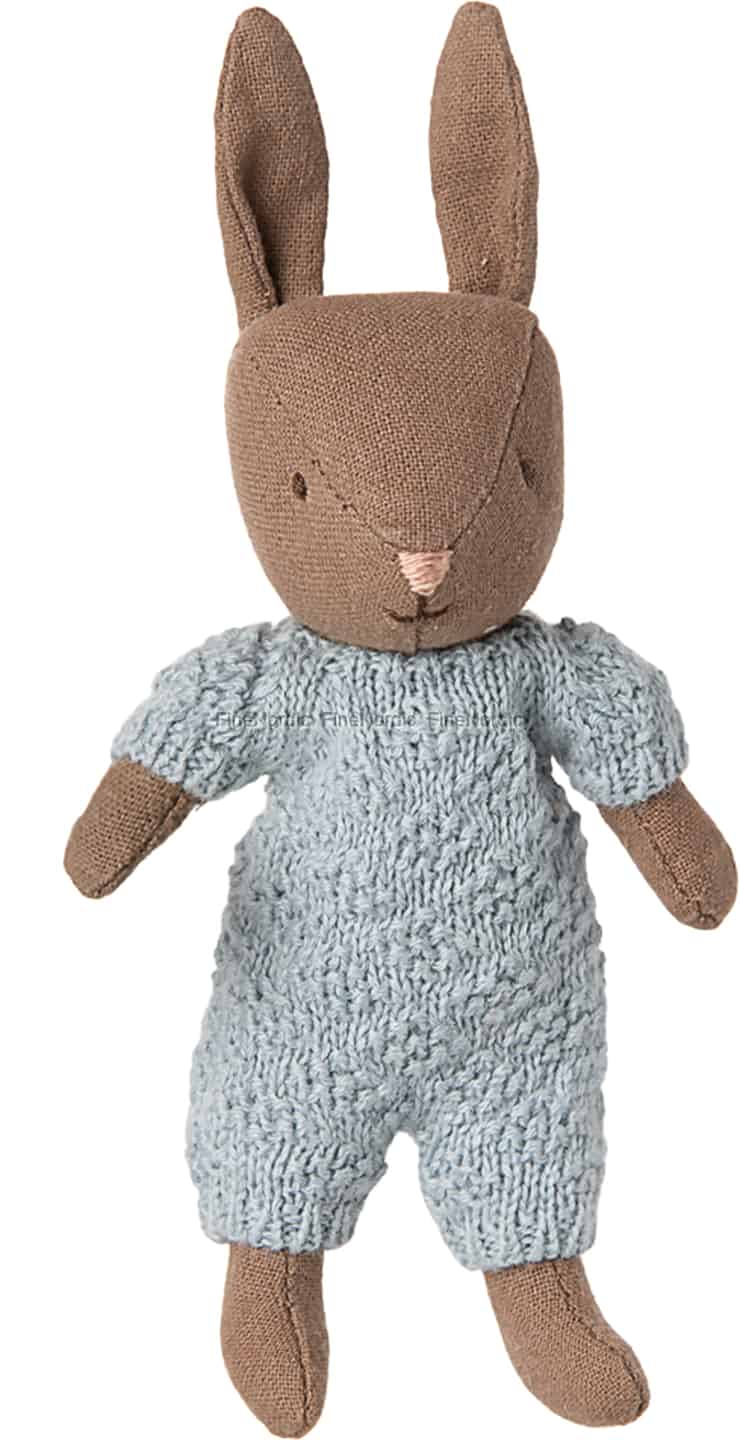 Öppna dörren till en värld av förundran med denna söta microkanin från Maileg. Klädd i en mysig, handstickad blå dräkt är denna lilla vän perfekt anpassad för små händer och stora berättelser, redo att bli en kär följeslagare.