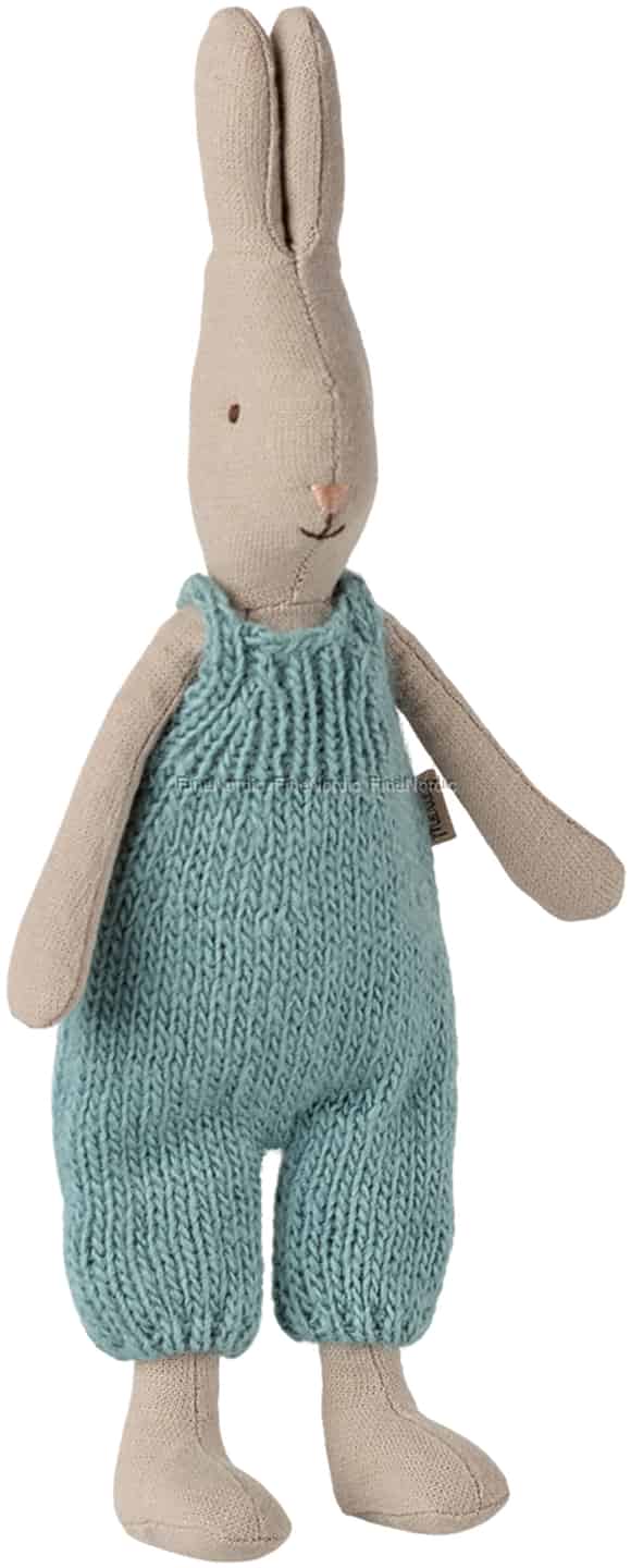 I Mailegs magiska värld bär varje detalj på en historia. Denna söta kanin, med sina långa, lyssnande öron och sitt vänliga broderade leende, är inget undantag. Kroppen är tillverkad av en underbart taktil textil som inbjuder till mjuka kramar, medan den mysiga stickade overallen tillför ett extra lager av charm och textur. Det är en vän som inte bara är skapad för lek, utan för att vara en tyst och tröstande närvaro genom barndomens alla små ögonblick, från eftermiddagsvila till upptäcktsfärder i trädgården.