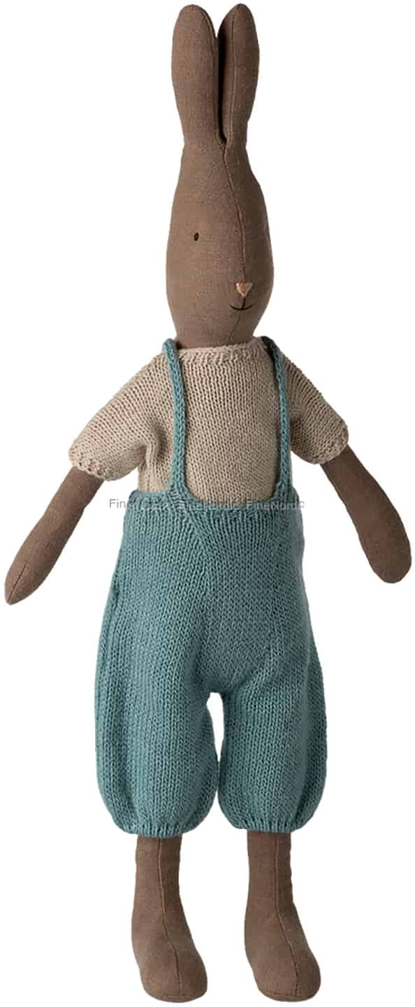 Maileg Kanin storlek 3 - Brun - Stickad tröja och hängselbyxor