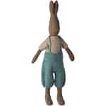 - Inspirerar till fantasifull lek: Klädd i en söt tröja och hängselbyxor kan kaninens kläder bytas ut mot andra Maileg-kläder, vilket väcker kreativiteten och utvecklar finmotoriken.