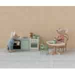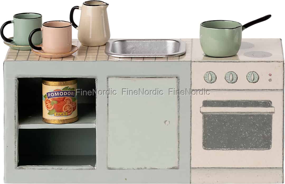 Föreställ dig hjärtat i ditt Maileg-mushus, en plats där små måltider tillagas och berättelser delas. Detta vackert detaljerade miniatyrkök är den perfekta scenen för otaliga små äventyr, från att brygga en kopp morgonte till att baka en pytteliten kaka.