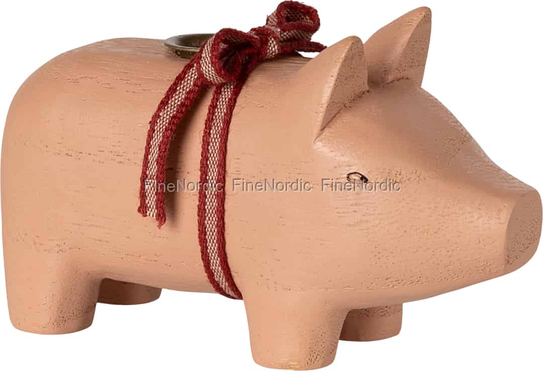 Maileg Ljusstake i trä gris liten (Ø ca 1,2 cm) - Rosa