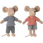 Öppna dörren till en värld av fantasi med LouiMax och Stella, de sötaste syskonmössen. Klädda i sina klassiska randiga tröjor är detta charmiga par redo att fylla ditt hem med små äventyr och hjärtevärmande berättelser.