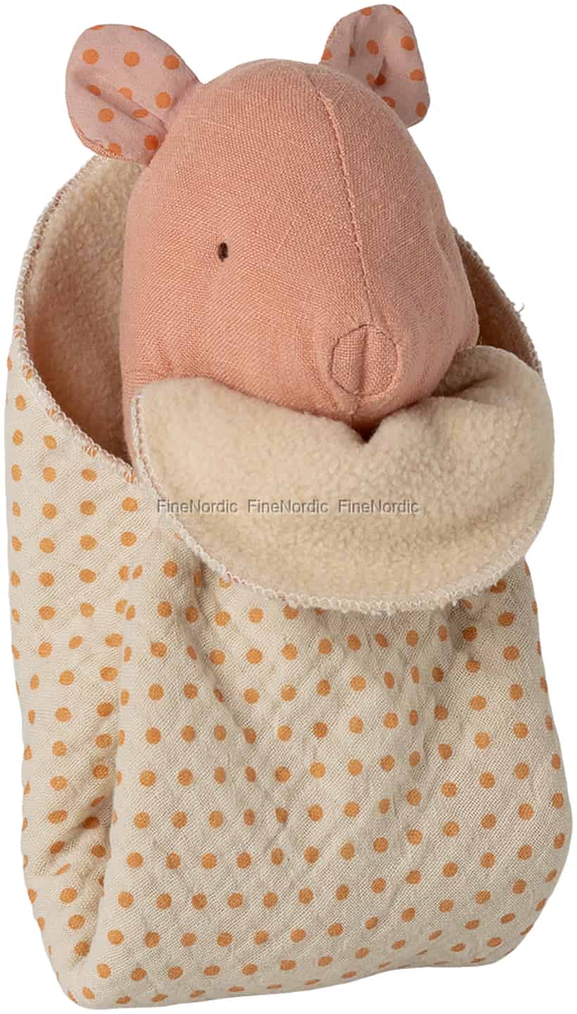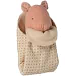 Omsluten i sin quiltade sovsäck är denna lilla gris redo att bli ditt barns käraste vän. Med sin mjuka, rosafärgade kropp och vänliga uttryck bjuder den in till ömma kramar och viskade hemligheter vid läggdags.