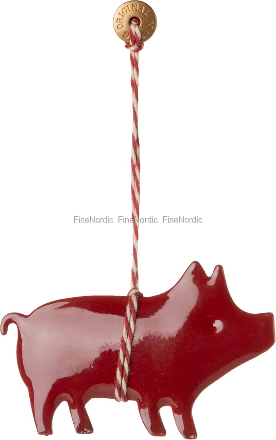 Föreställ dig det mjuka skenet från ljusslingan som reflekteras i den blanka röda ytan på denna charmiga grisprydnad. Denna förtjusande karaktär från Maileg ger en känsla av klassisk dansk folktro och innerlig värme till dina juldekorationer.