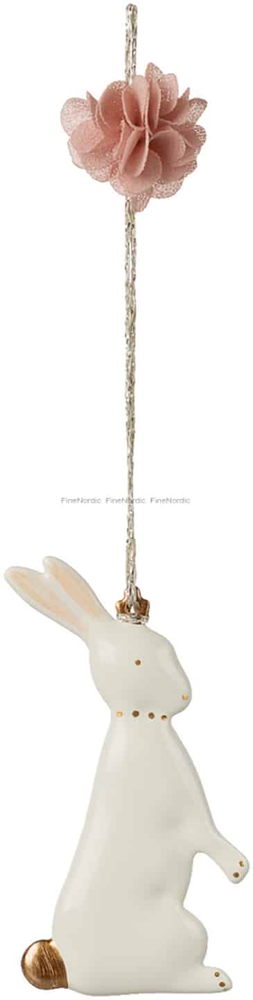 Föreställ dig denna rara kanin, en stillsam kunglighet från en gömd äng, som finner en speciell plats i ditt hem. Mailegs hantverksskicklighet lyser igenom i varje detalj, från den krämvita finishen på metallen till det varma, borstade guldet på dess lilla svans och tassar. Hållningen är stolt och uppmärksam, som om den lyssnar efter de första vårtecknen. Den fina, prickiga kragen och den kungliga kronan ger den en unik personlighet och förvandlar den från en enkel dekoration till en liten karaktär med en egen berättelse.