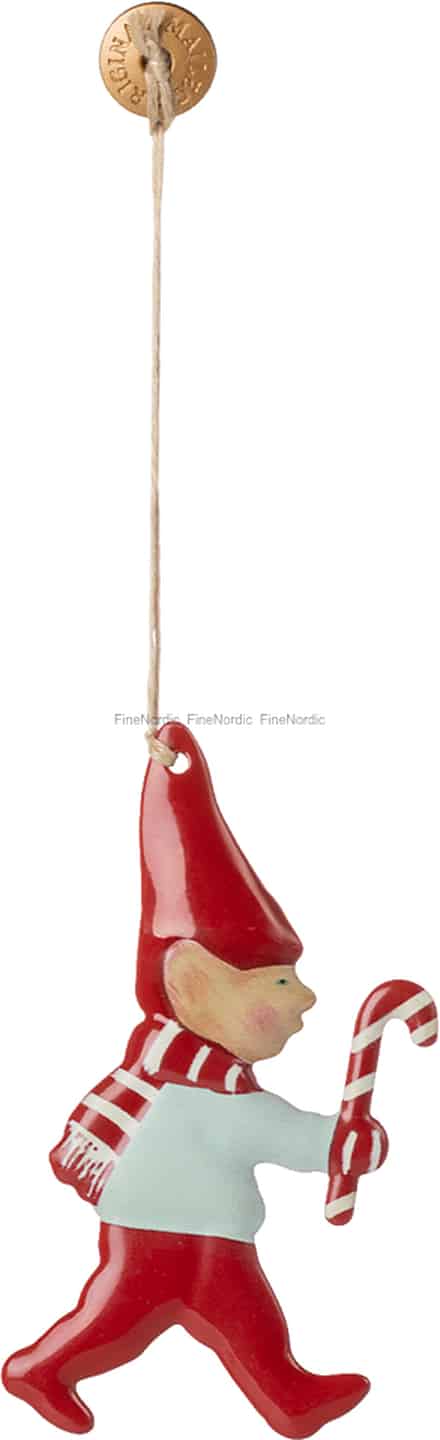 Välkomna ett litet stycke skandinavisk julmagi till ditt hem med denna förtrollande metallnisse från Maileg. Med en glänsande röd luva, en mysig randig halsduk och en söt polkagrisstång hårt i sin hand är han på ett mycket viktigt julärende. Den vackra, handmålade ytan ger honom ett alldeles eget liv och personlighet, och förvandlar honom från en enkel dekoration till en liten karaktär med en historia att berätta. Hans rosiga kinder och milda uttryck kommer garanterat att charma både stora och små.