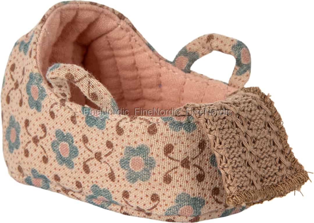 Varje liten detalj i denna miniatyr-bärlift är skapad för att inspirera till de ömmaste av berättelser. Utsidan, med sitt fina blommönster på en mjuk textilbas, känns som en skatt från en svunnen tid. Inuti skapar ett mjukt, quiltat foder i en dämpad rosa nyans ett underbart mjukt och inbjudande bo för din babymus att vila i.