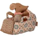 Se till att din lilla Maileg-vän alltid ligger tryggt och ombonat på resan. Denna vackert utformade bärlift är en mjuk och säker plats för babymöss att sova, oavsett om ni besöker dockhuset bredvid eller utforskar trädgården.