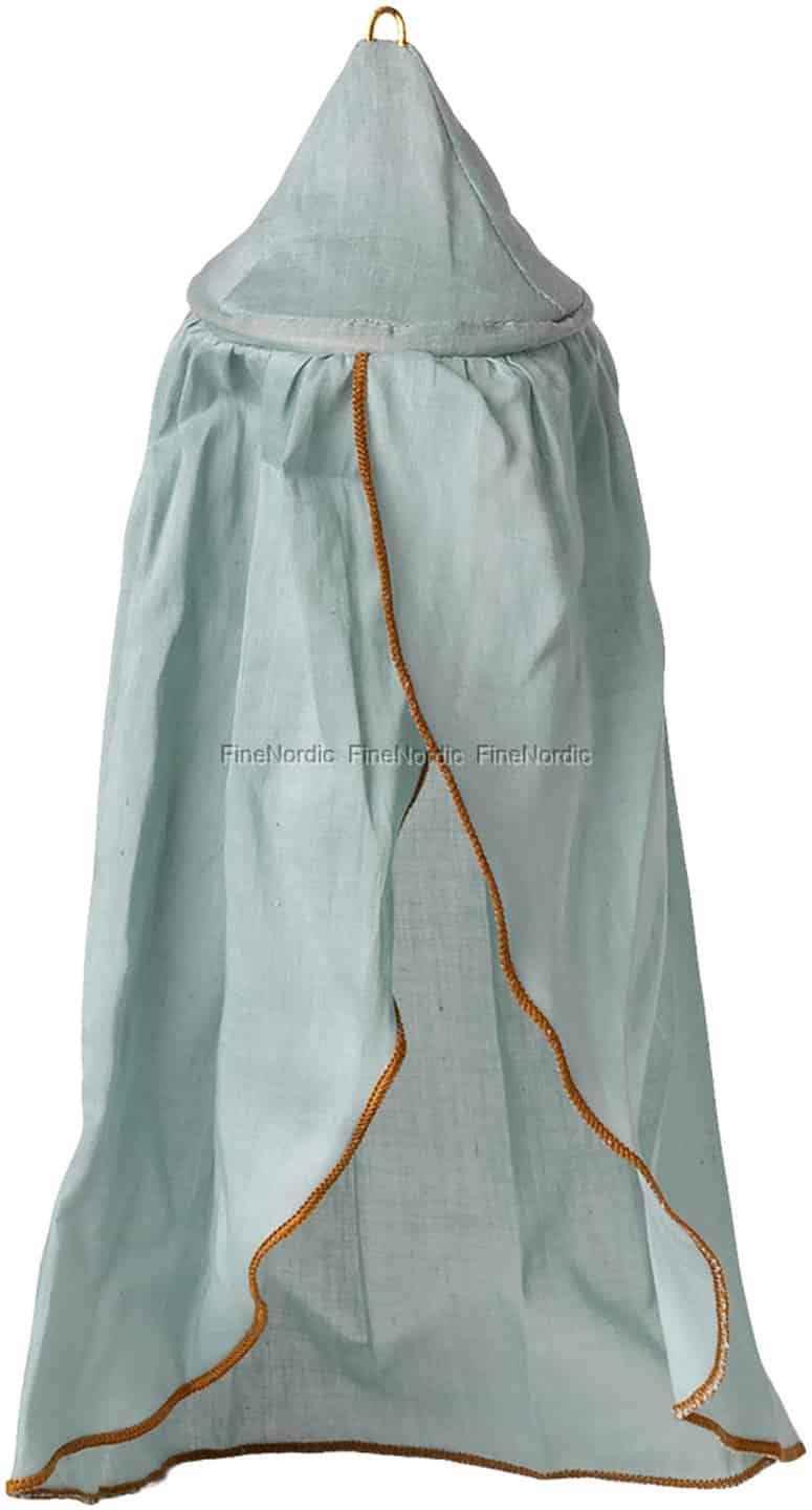 Det är dessa genomtänkta detaljer som väcker Mailegs värld till liv. Sänghimmeln hänger enkelt från sin lilla guldögla, redo att placeras över en vagga, säng eller till och med i ett mysigt hörn fyllt med små kuddar. Det är en detalj som bjuder in till att sakta ner, skapa en vacker scen och se hur nya berättelser och magiska ögonblick föds ur det allra enklaste.