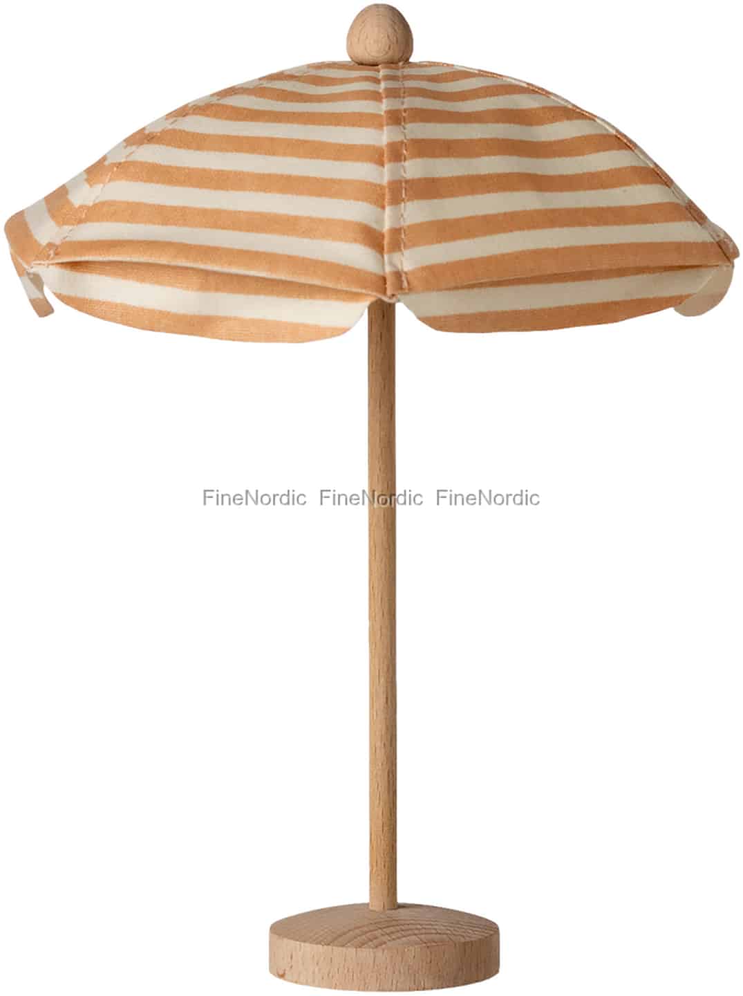 Varje berättelse vid havet behöver en skuggig plats för avkoppling, och detta utsökta miniatyrparasoll från Maileg är den perfekta pricken över i:et. Föreställ dig dina små musvänner, inbäddade på en liten handduk, skyddade från den låtsade solen under de vackra ränderna i ljus korall. Den vackert tillverkade trästången och foten ger en autentisk och stabil känsla, redo för en dag fylld av äventyr vid strandkanten. Det är dessa genomtänkta detaljer som förvandlar leken till en värld av förtrollande berättelser, där de minsta tillbehören väcker de största idéerna.
