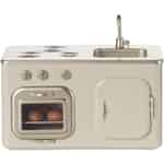 - Ett komplett pentry: Genom att kombinera spis, ugn och diskho i en kompakt enhet på 19 cm, erbjuder det allt som behövs för att skapa det livliga hjärtat i ett miniatyrhem.