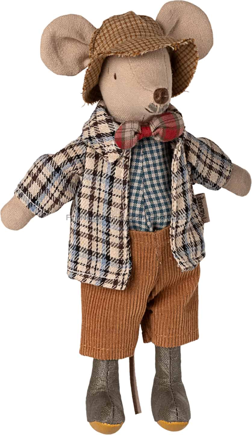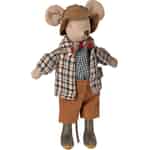 - Klädd för tidlösa sagor: Elegant klädd i sin tweedhatt, manchesterbyxor och rutiga kavaj är hans charmiga klädsel ett bevis på den tidlösa kvalitet och detaljrikedom som Maileg är känt för.