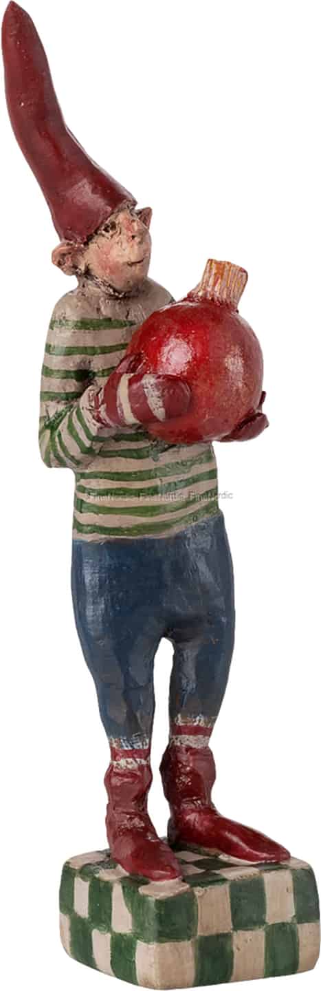 I en stilla verkstad, där doften av tall hänger i luften, väcks Mailegs Noilly Noël-nissar till liv. Nummer 32 är en särskilt glad själ, klädd i sin randiga favorittröja och redo för festligheterna. Han håller varsamt i en glänsande röd julkula, en symbol för den värme och det ljus han för med sig till hemmet. Hans rustika, handmålade yta berättar en historia om konstnärskap och omsorg, från toppen av hans höga röda luva till hans stadiga, rutiga fot. Varje penseldrag fångar en känsla av tidlös folktro och bjuder in dig att sakta ner och uppskatta säsongens enkla magi.