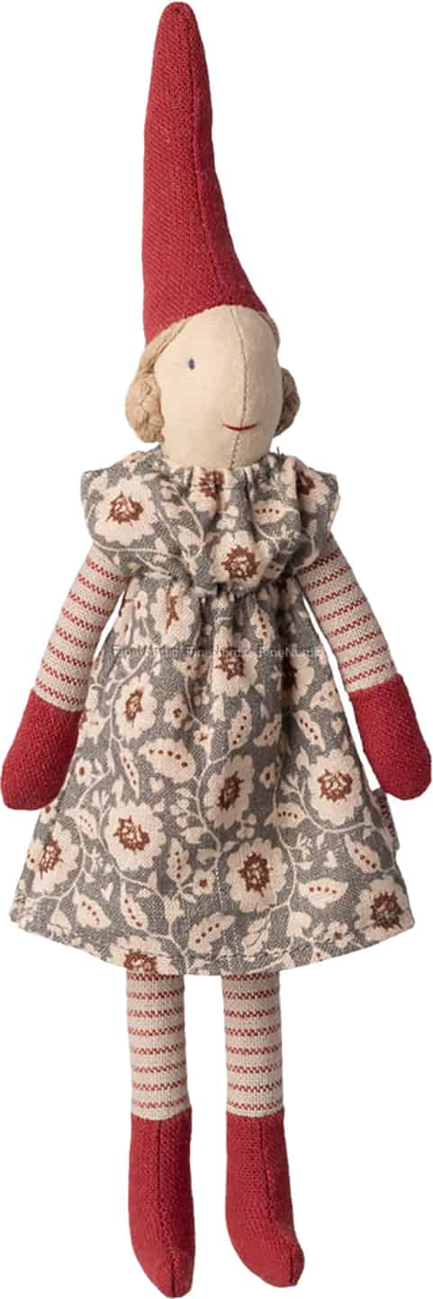 Bjud in en liten del av den danska jultraditionen i ditt hem med denna förtrollande nisse från Maileg. Med sitt milda leende och vackert detaljerade klädsel är hon redo att dela julens alla stilla och glädjefyllda ögonblick med dig.