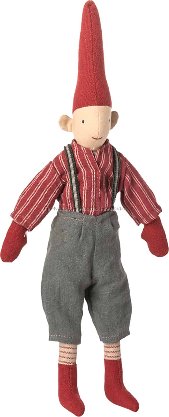Välkomna en kär vän till ditt hem under denna högtid. Med sitt vänliga leende och sin fina röd-randiga tröja är denna charmiga Maileg-nisse redo att dela julens magi och föra med sig berättelser från dansk folktro och julglädje.