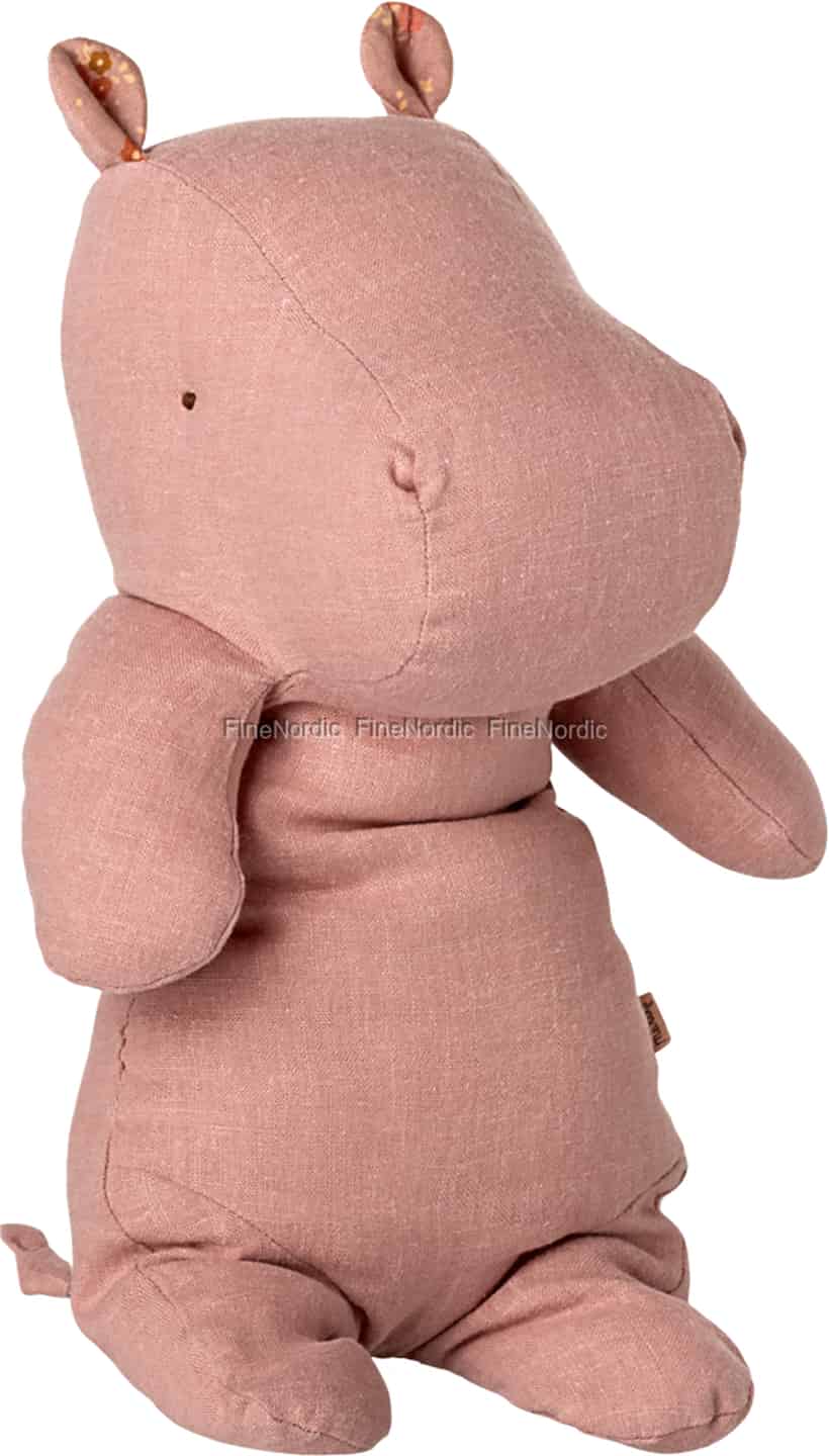 Från Mailegs fantasifulla värld kommer en ny vän att älska. Safariflodhästen är en mild själ med en mjuk, puderrosa kropp gjord av en härlig taktil textil som inbjuder till oändliga kramar. Dess söta, enkla uttryck väcks till liv med omsorgsfulla broderier, och en titt inuti öronen avslöjar ett charmigt blommönster – en hemlig detalj som viskar om långa eftermiddagar på en solig äng. Det här är inte bara en leksak; det är en följeslagare för sagoberättande och en bevarare av hemligheter.